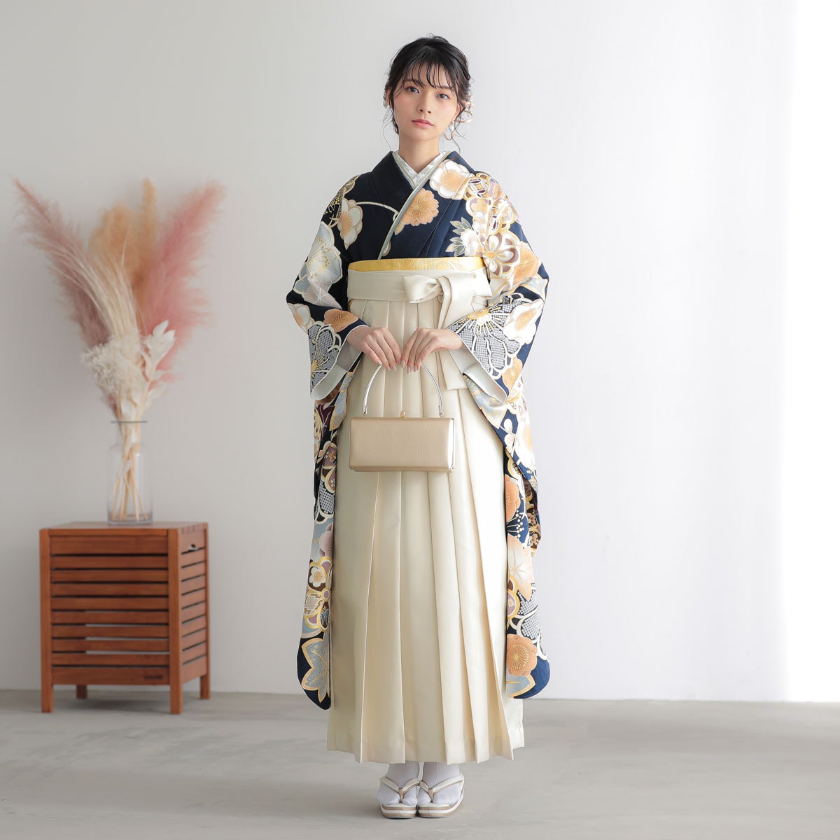 Kami Shibai 紺 草花 レンタル 振袖袴 R1952