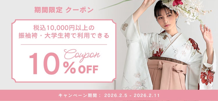 【期間限定】1万円以上の振袖袴・大学生袴で使える10%オフクーポン!