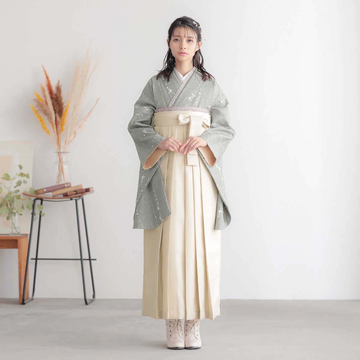 灰黄緑 かすみ草に青海波 レンタル 大学生袴 G1026