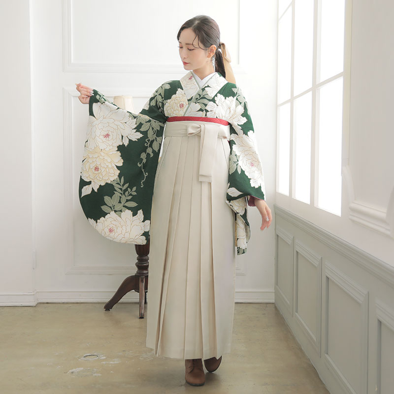 【SALE】 グリーン 白牡丹 レンタル 大学生袴 G982