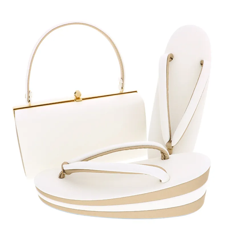 ※草履やバッグ等の製品につきまして、すべて職人さんが手作業で作っておりますため、個体差もございますが細部のシワ等見受けられますこともございます。また、織り地を使用したものにつきましては、裁断部分付近の糸の多少の飛び出しなどが製作工程上で生じる場合がございます。予め、ご了承くださいませ。