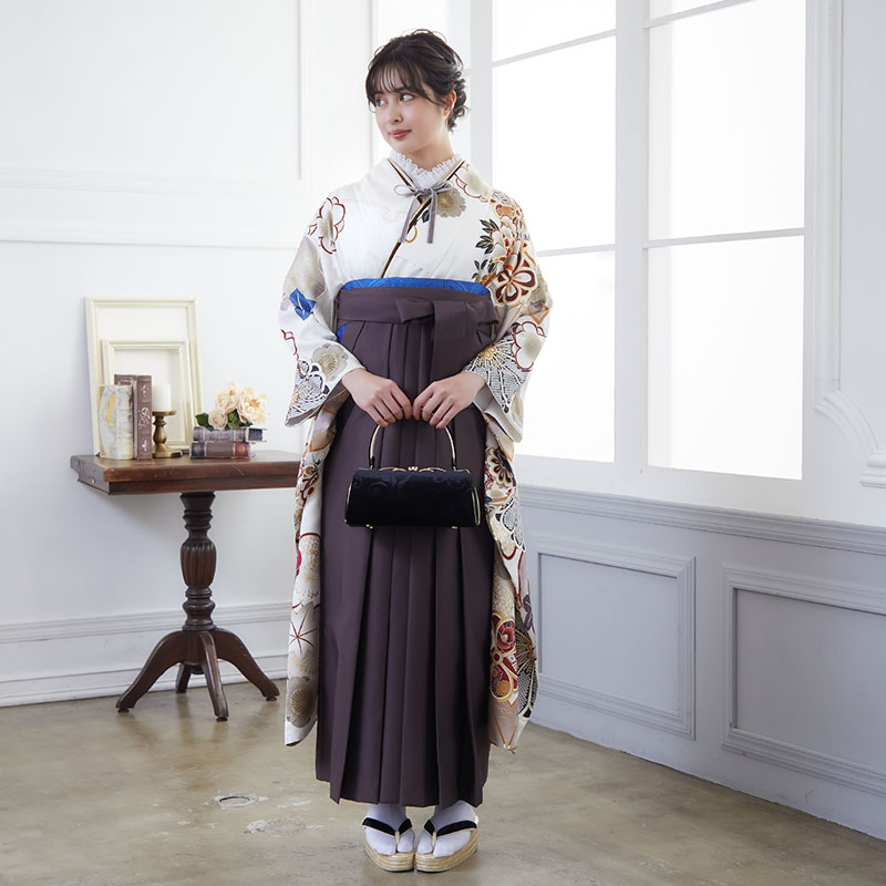 【SALE】 【友禅】白 牡丹梅 レンタル 振袖袴 R2008